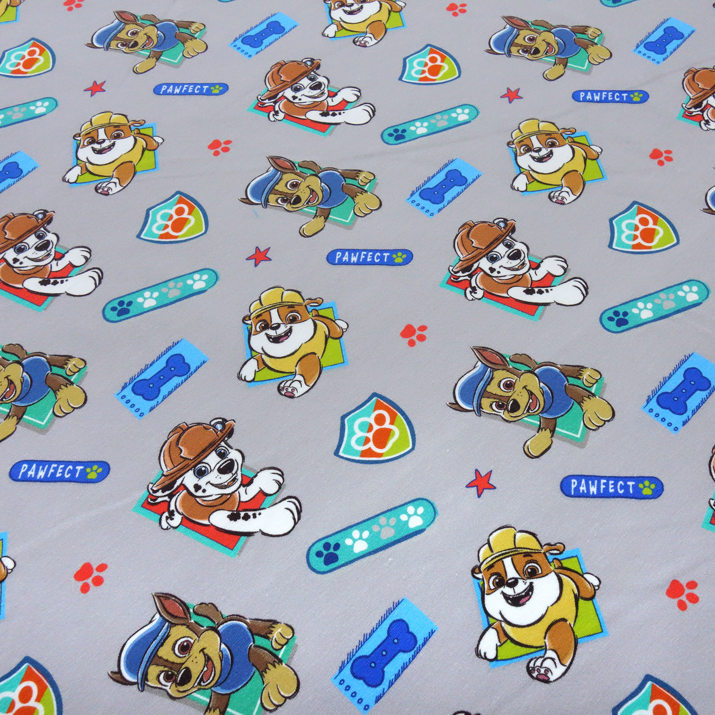 Toller Baumwolle-Jersey Stoff. Der Stoff ist mit einem Lizenzdesign von "Paw Patrol" bunt bedruckt. Die einzelnen Motive haben eine Größe von max. ca. 5 x 7 cm. Der Stoff ist mittelschwer und hat ein Gewicht von ca. 300 g/lfm. Ideal für Kinderkleidung wie Hosen, Shirts, Röcke, Kleider oder Accessoires wie Beanies oder Loops etc. nähen.