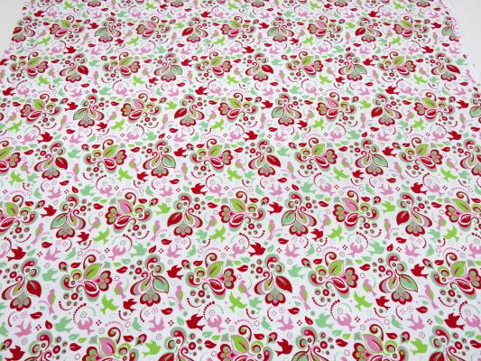 Stoff Baumwolle Jersey mit Blumen Ranken Vögel Design weiss grün rot rosa mint Kinderstoffe Kleiderstoffe