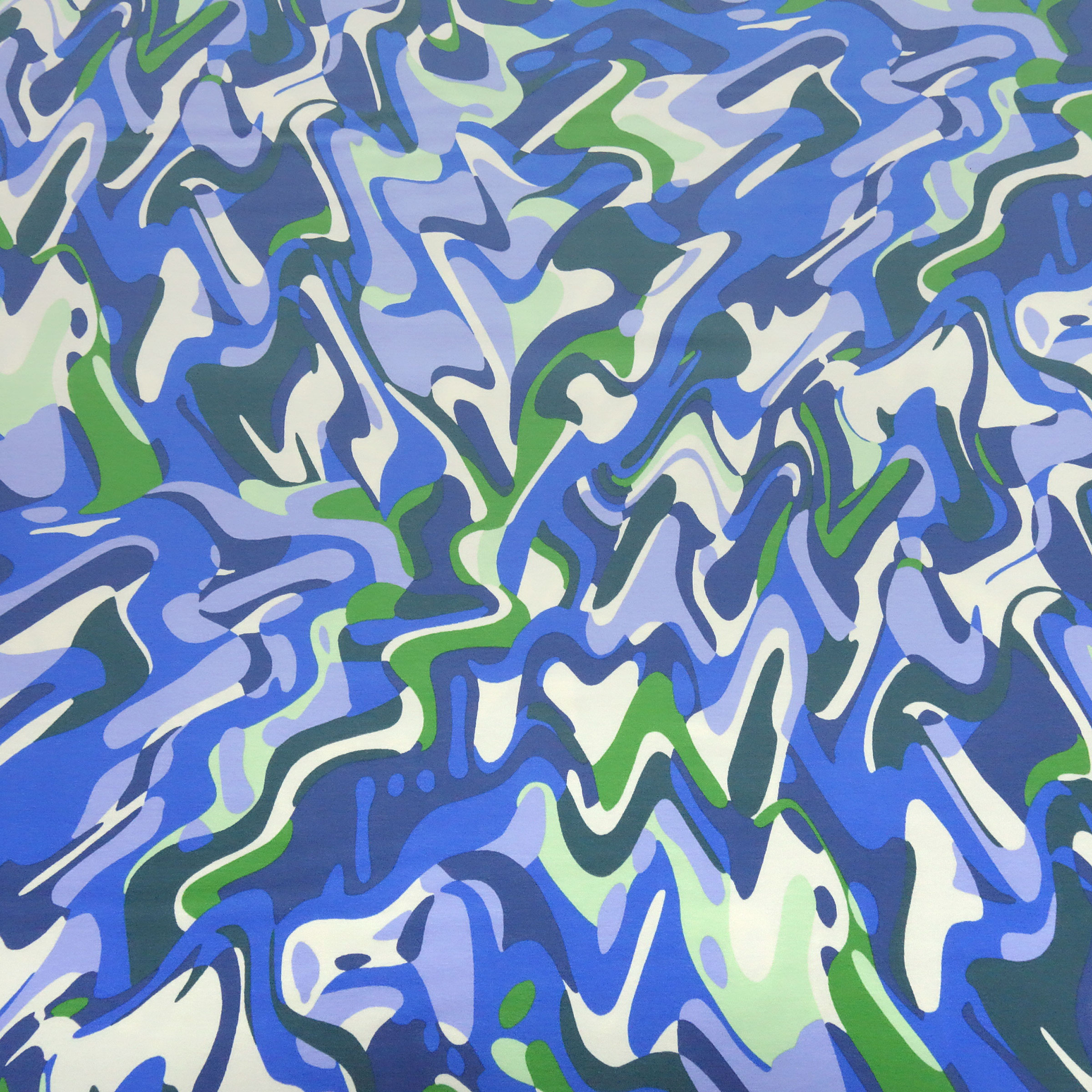 Stoff Baumwolle Jersey mit abstrakten grafischen Design hellblau blau grün cremeweiß Kleiderstoff Kinderstoff