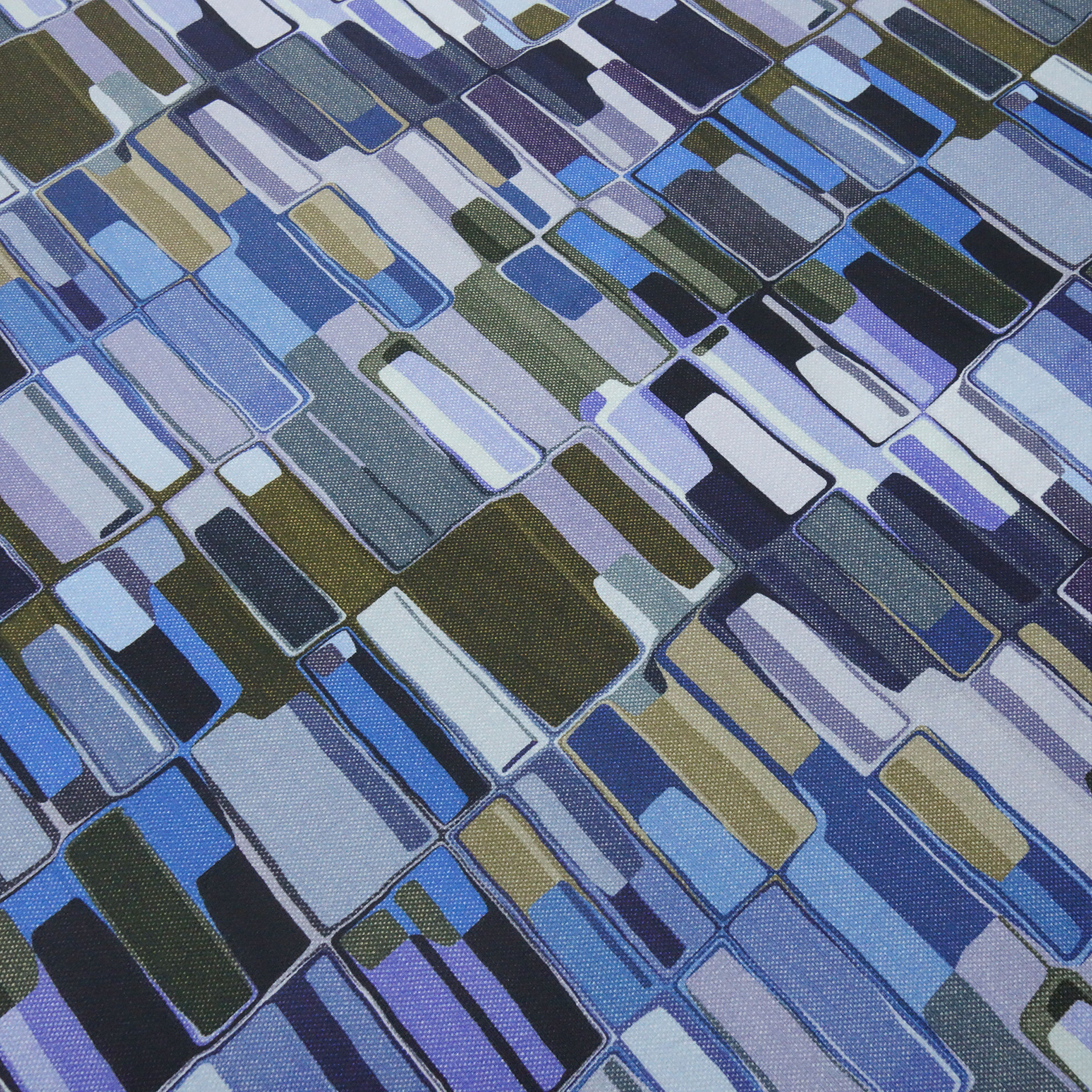 Stoff Baumwolle Jersey mit grafischen geometrischen Muster jeans blau flieder lila beige bunt Kleiderstoff