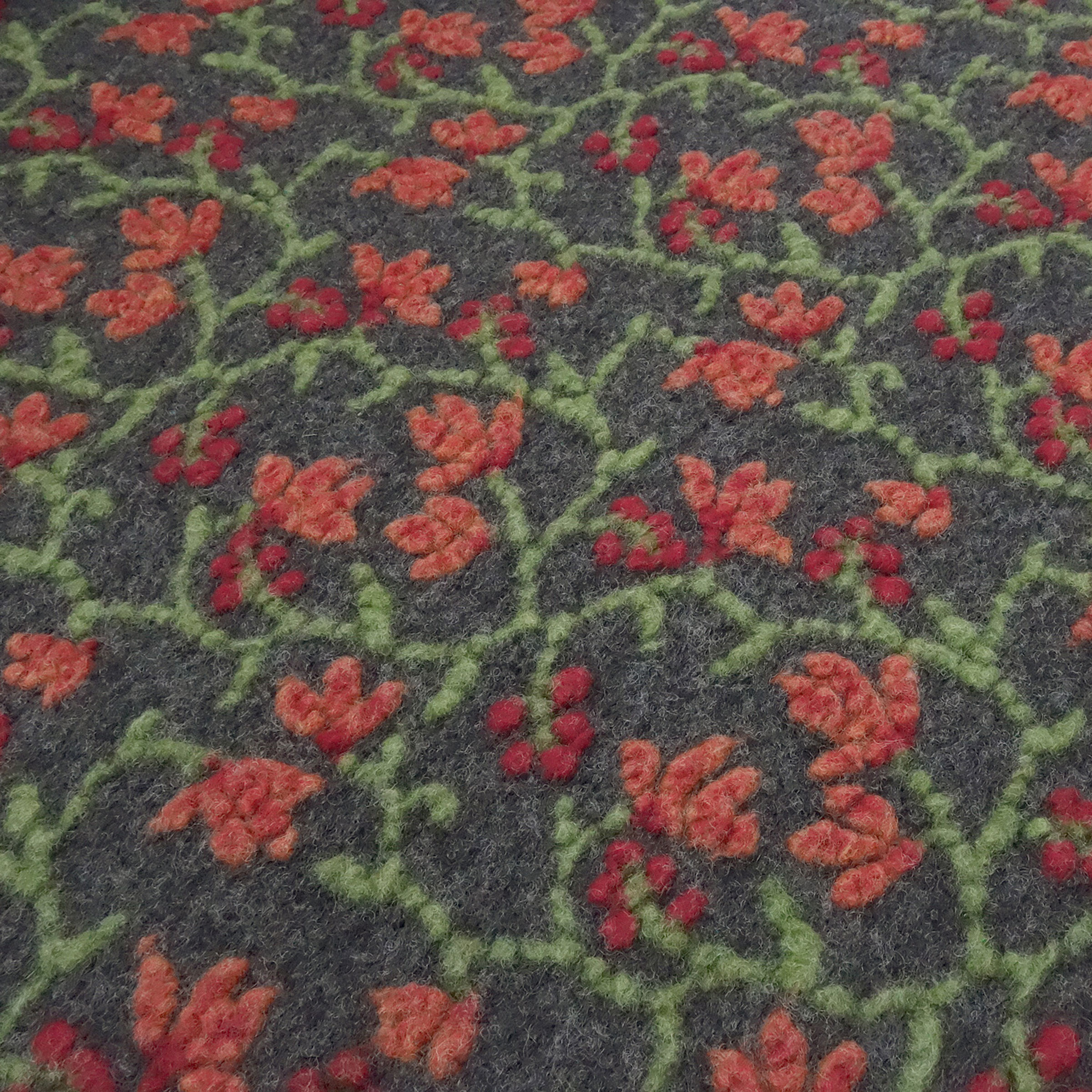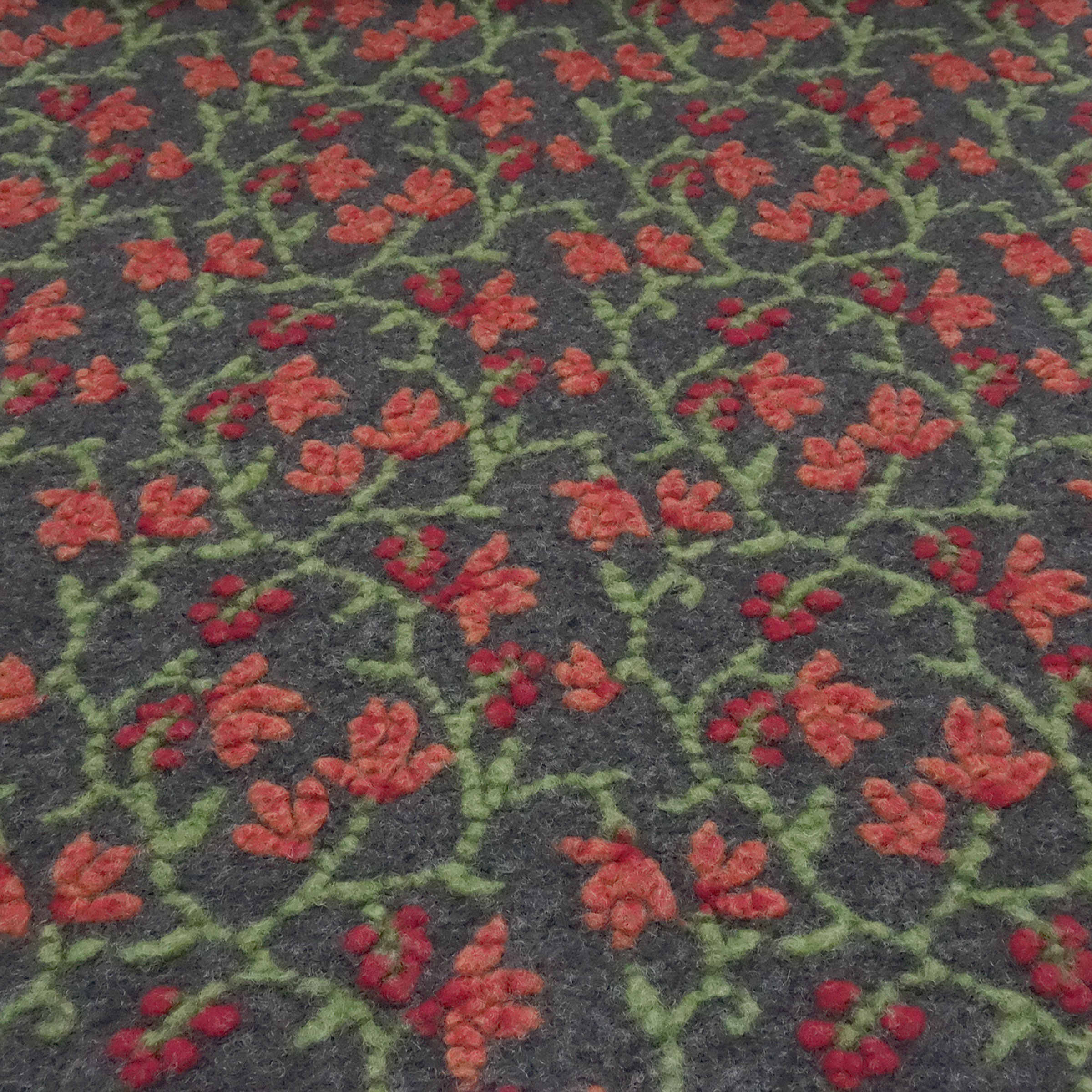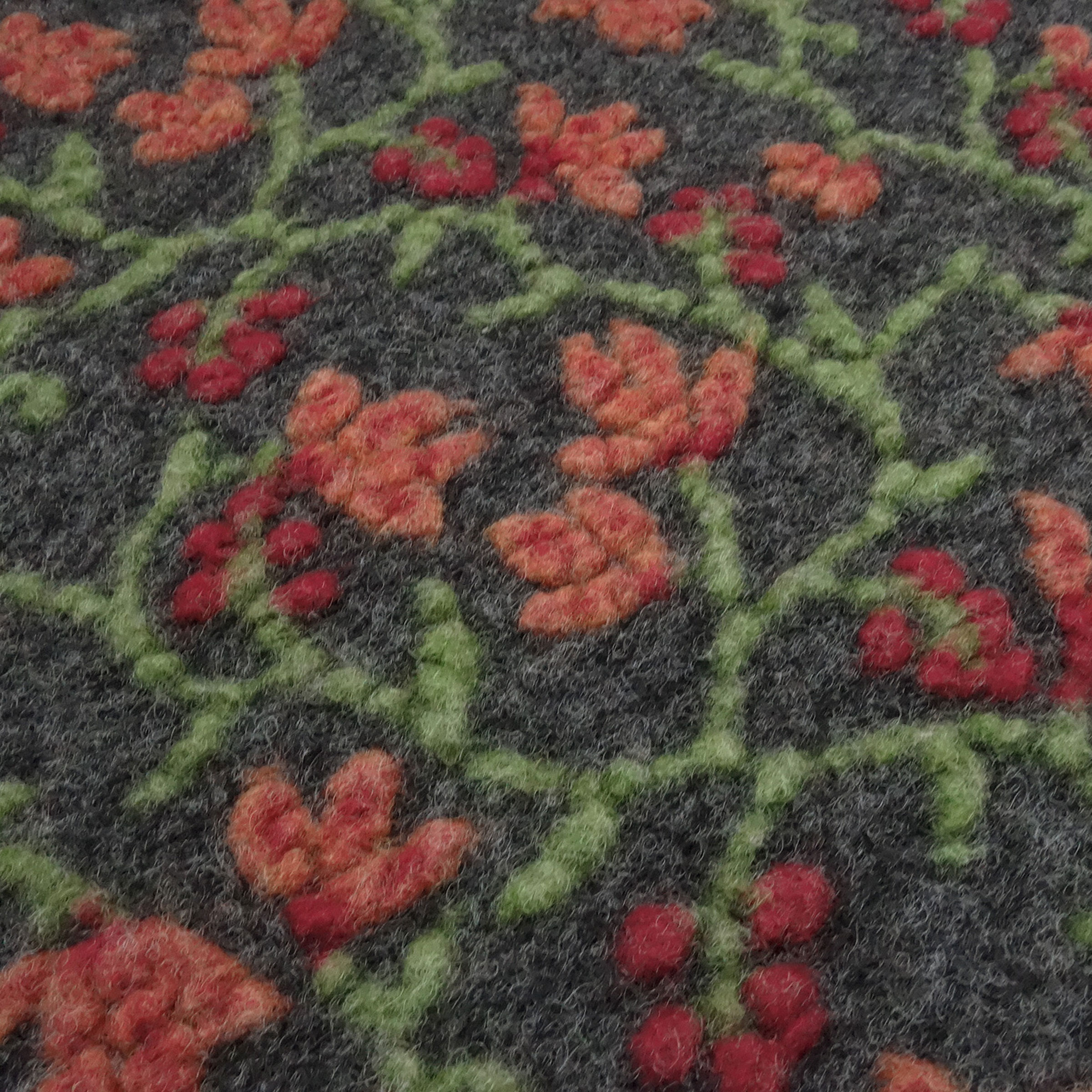 Stoff Ital. Musterwalk Kochwolle Walkloden Relief Blumen Ranken grau grün orange rot Mantelstoff Kleiderstoff