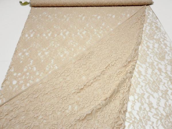 Stoff Stretch Spitze Spitzenstoff mit Blumen Rosen Ranken Design beige sand Kleiderstoff