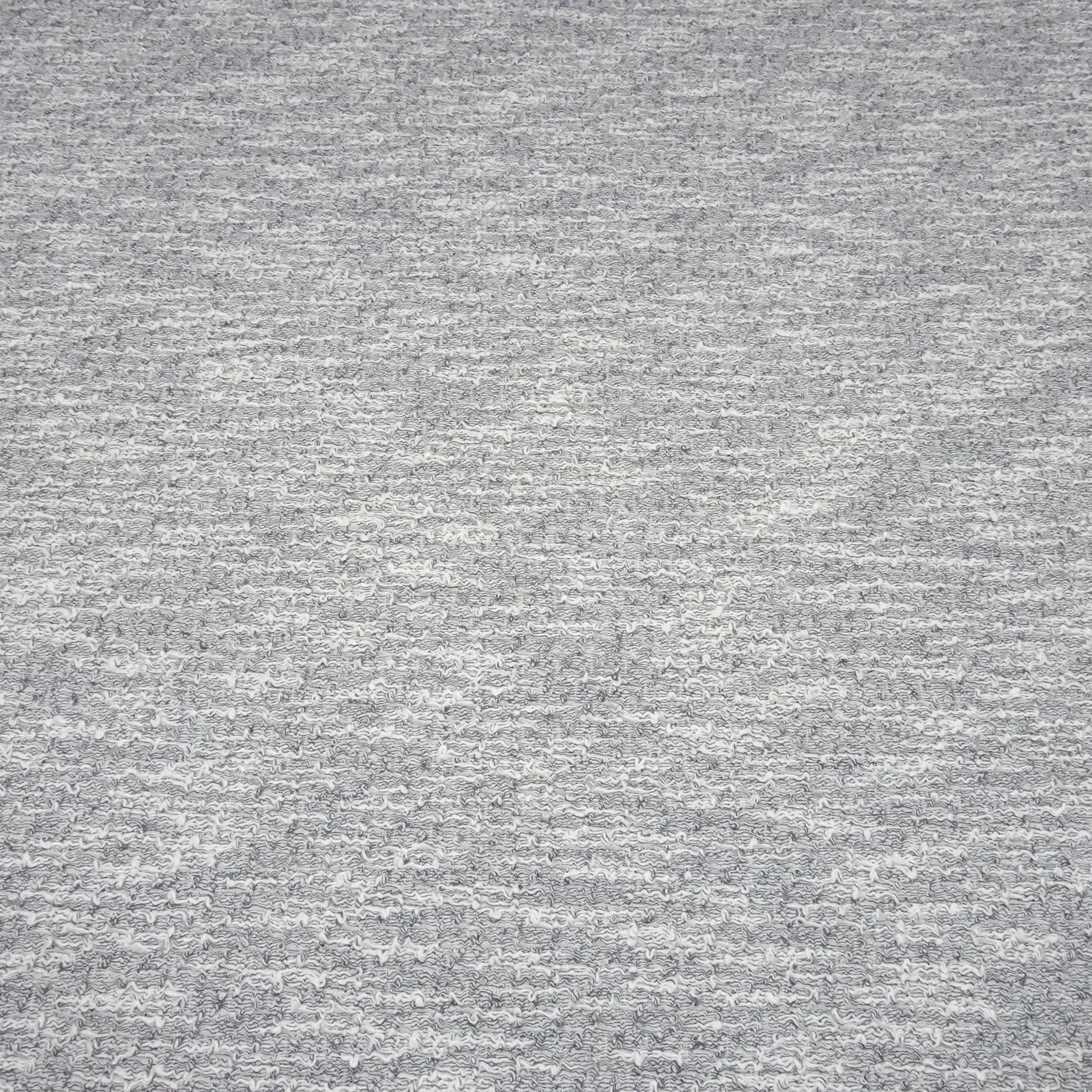 Schöner weicher und stretchtiger Strickstoff. Der Stoff ist in den Farben weiß und grau melange gemustert. Die Strickstoff ist mittelschwere und hat ein Gewicht von ca. 365 g/lfm. Ideal für Kleider, Jacken, leichte Mäntel, Kostüme oder Accessoires etc...