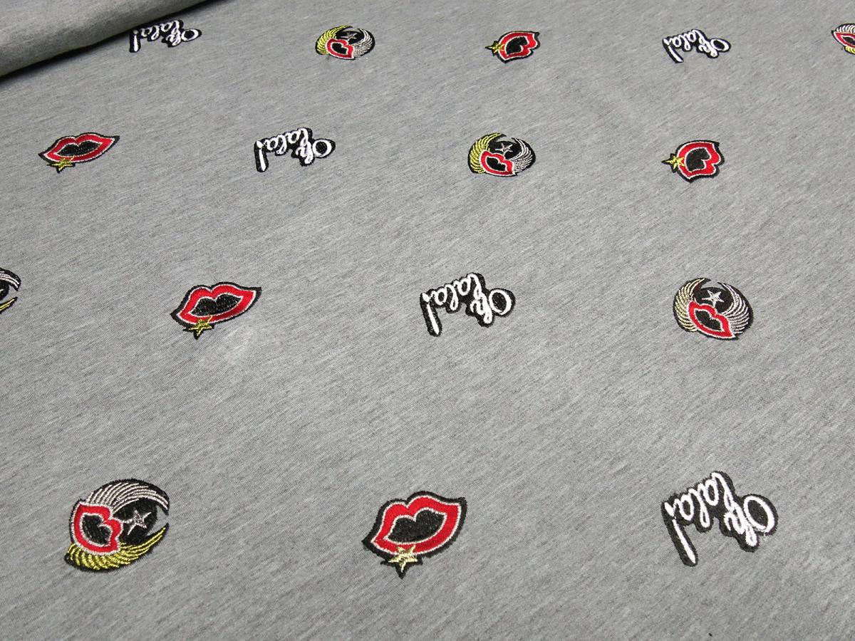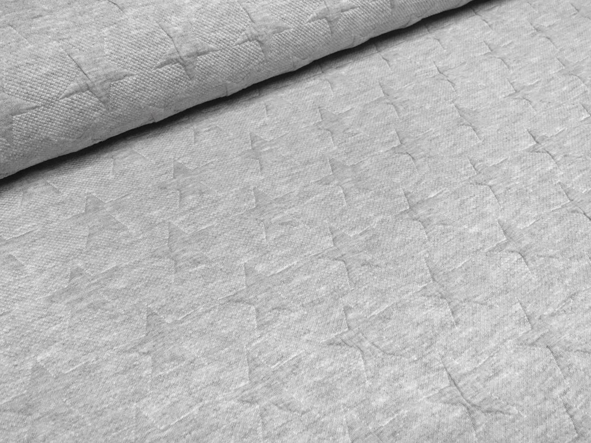 Stoff Jacquard Sweatshirtstoff mit Sterne Design hellgrau melange Kleiderstoff Kinderstoff Hoodiestoff