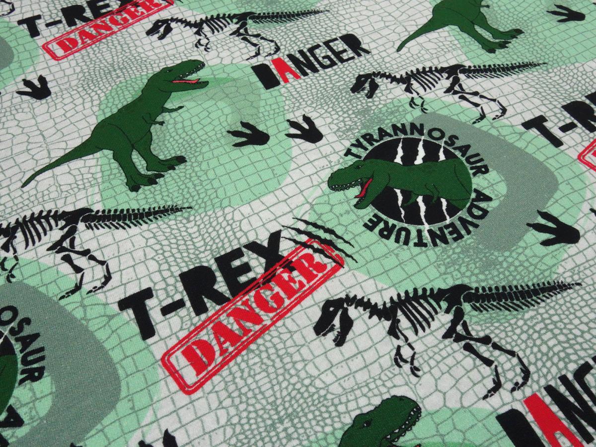 Stoff Baumwolle French Terry Sweatshirtstoff mit Dino Dinosaurier Design grün grau schwarz rot Kinderstoff Kleiderstoff