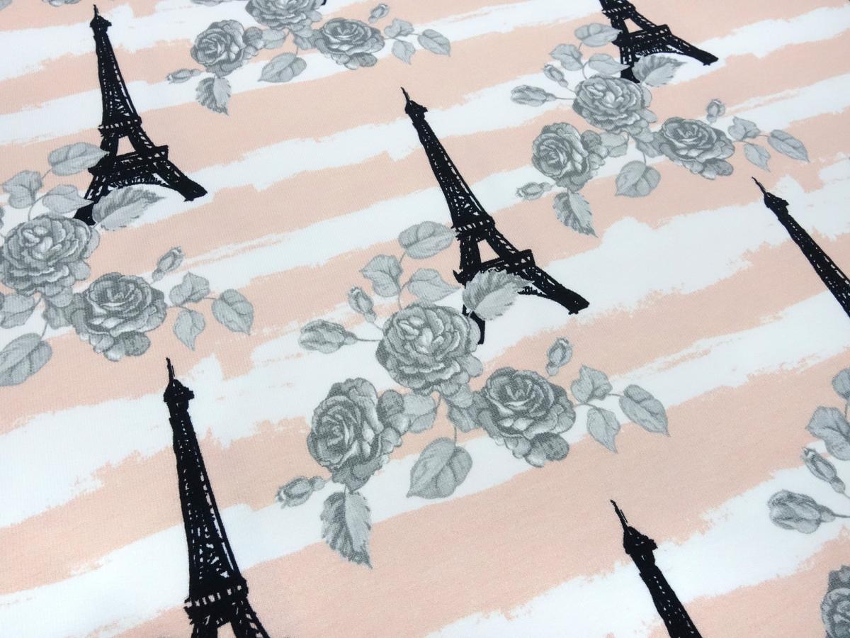 Stoff Baumwolle French Terry Sweatshirtstoff Eiffelturm Rosen Streifen Design lachs weiß grau schwarz Kleiderstoff Kinderstoff