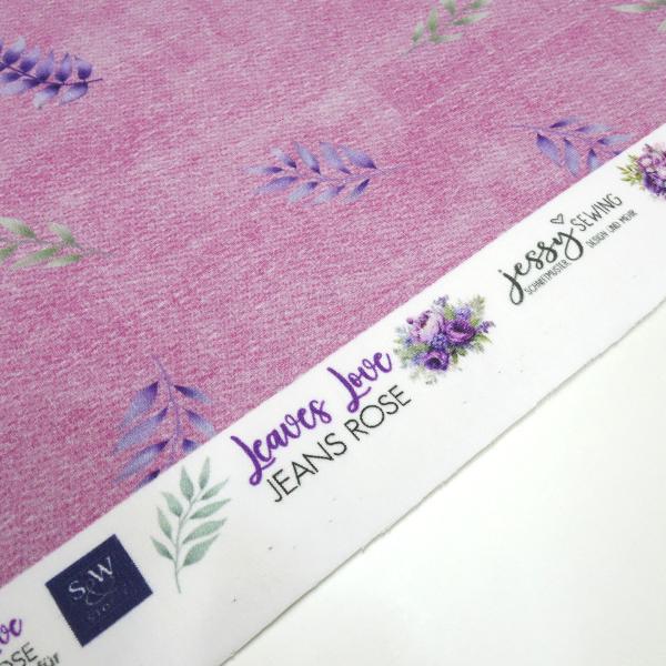 Stoff Baumwolle French Terry Sweatshirtstoff LEAVES LOVE Jessy Sewing Blätter Ranken jeans rosa flieder lila grün Kleiderstoff Kinderstoff